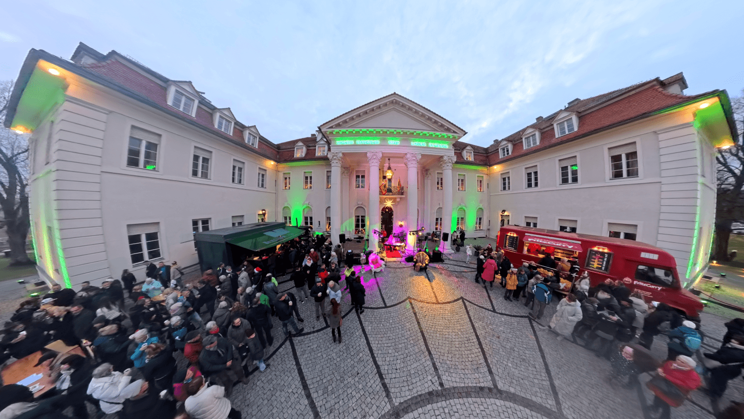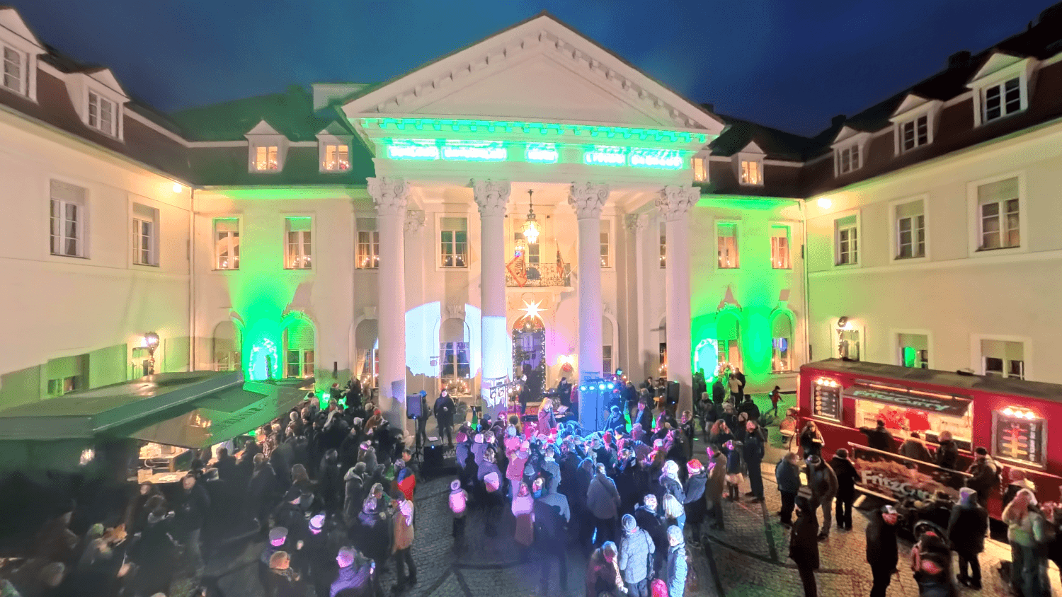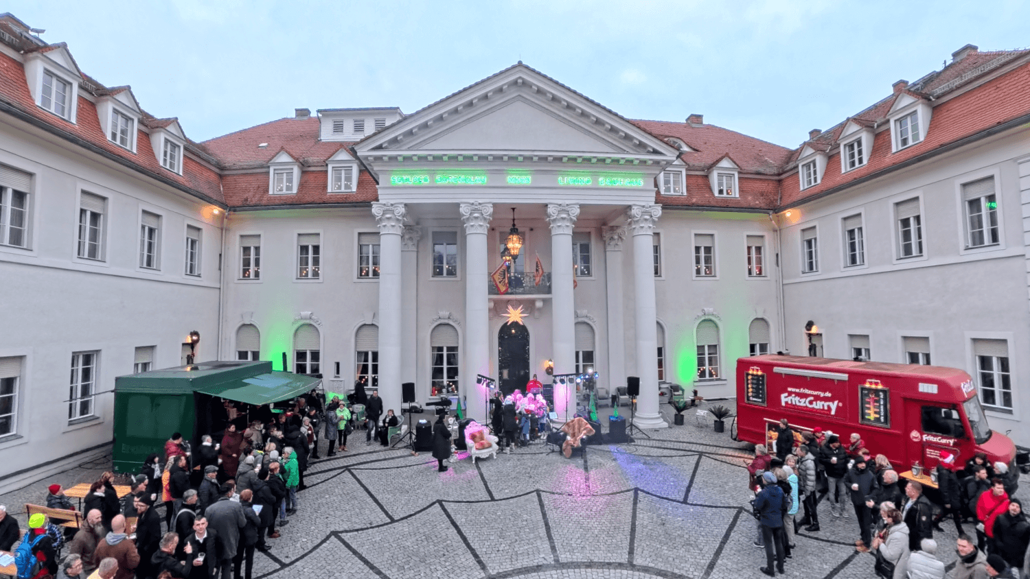 Am 13. Dezember 2025, am Vorabend des 3. Advents, veranstaltete die Living Bauhaus Kunststiftung SbR zum fünften Mal das traditionelle Weihnachtssingen auf dem Schlosshof von Schloss Bärenklau.